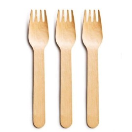 Offer an eye-catching, economical alternative to traditional disposable cutlery at your take out restaurant, hotel, cafe, coffee shop, winery, office break room, or catered events with this environmentally friendly, renewable wooden fork. wood spoon and fork comes in a pack.